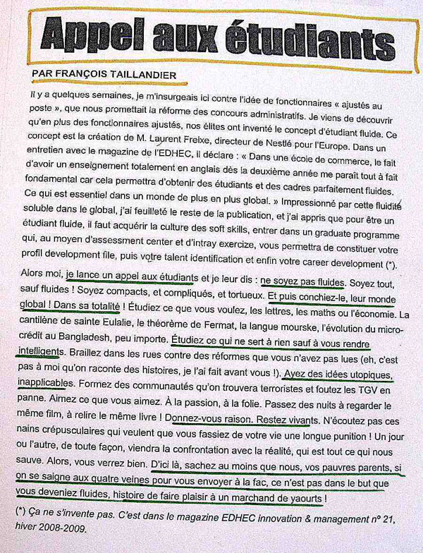 Vu ce matin à la fac de Censier (Sorbonne Paris3), où cet article est devenu un tract affiché. Merci à Daniel qui l’a relevé !