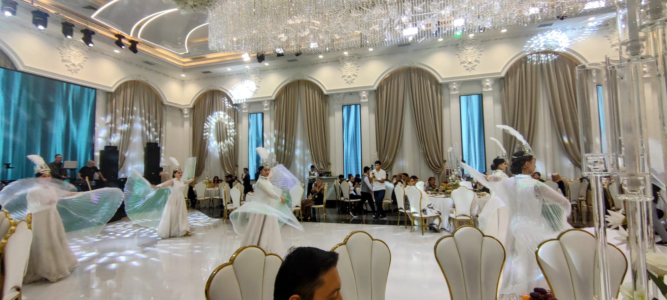 Il introduit l'arrivée des mariés alors que tous les invités ont pris place